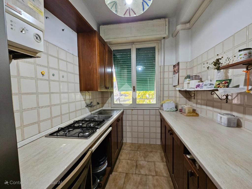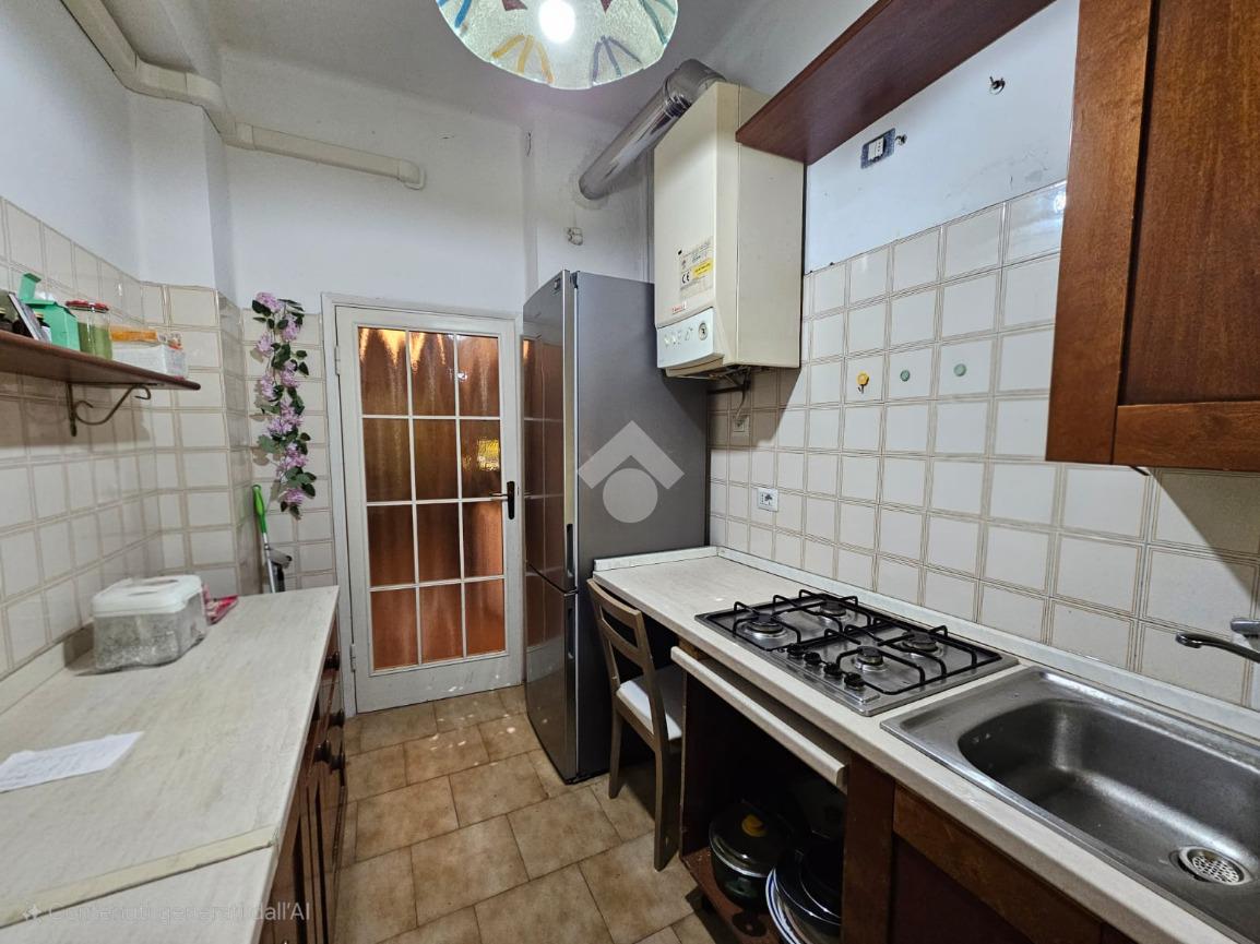La zona giorno è composta da una cucina separata con finestra e da un soggiorno di generose dimensioni, con accesso diretto al balcone, ideale per momenti di relax all’aperto.